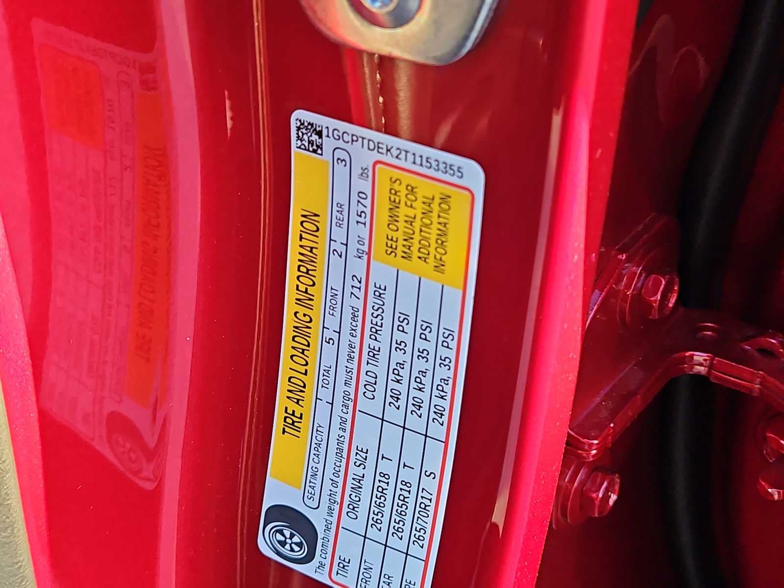 - Tire pressure display of current PSI available in the Driver Information Center
