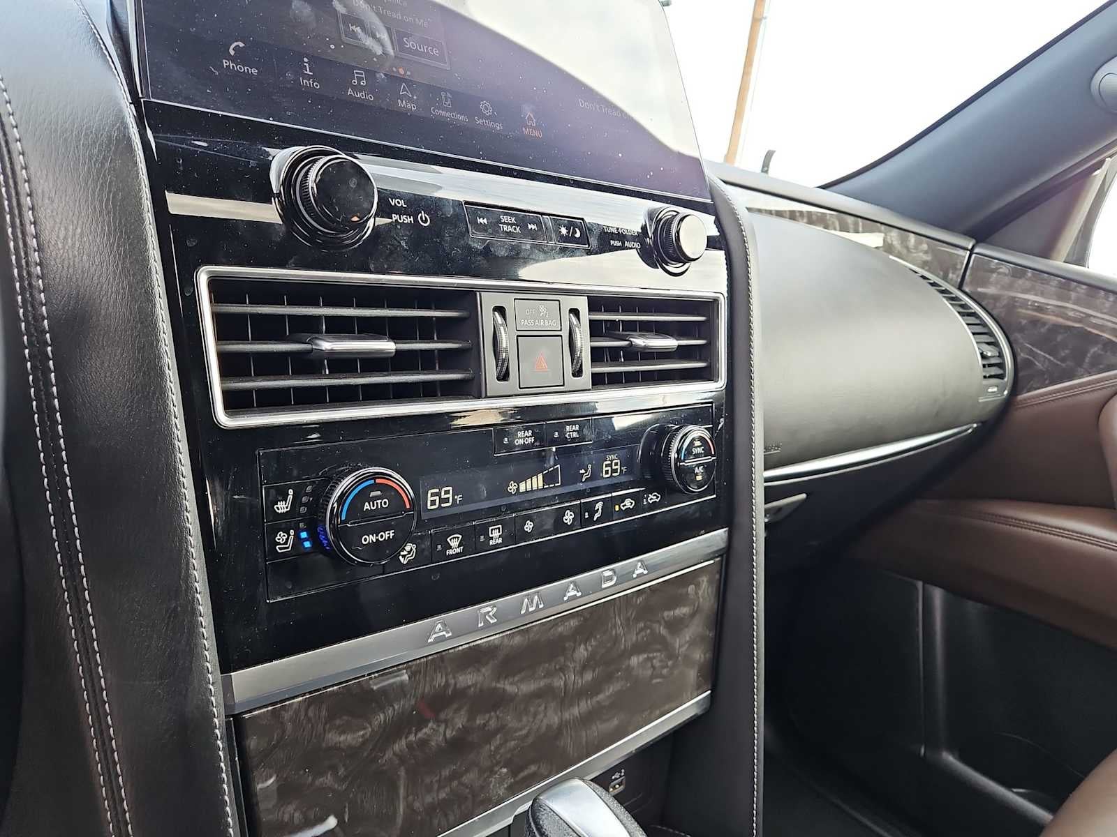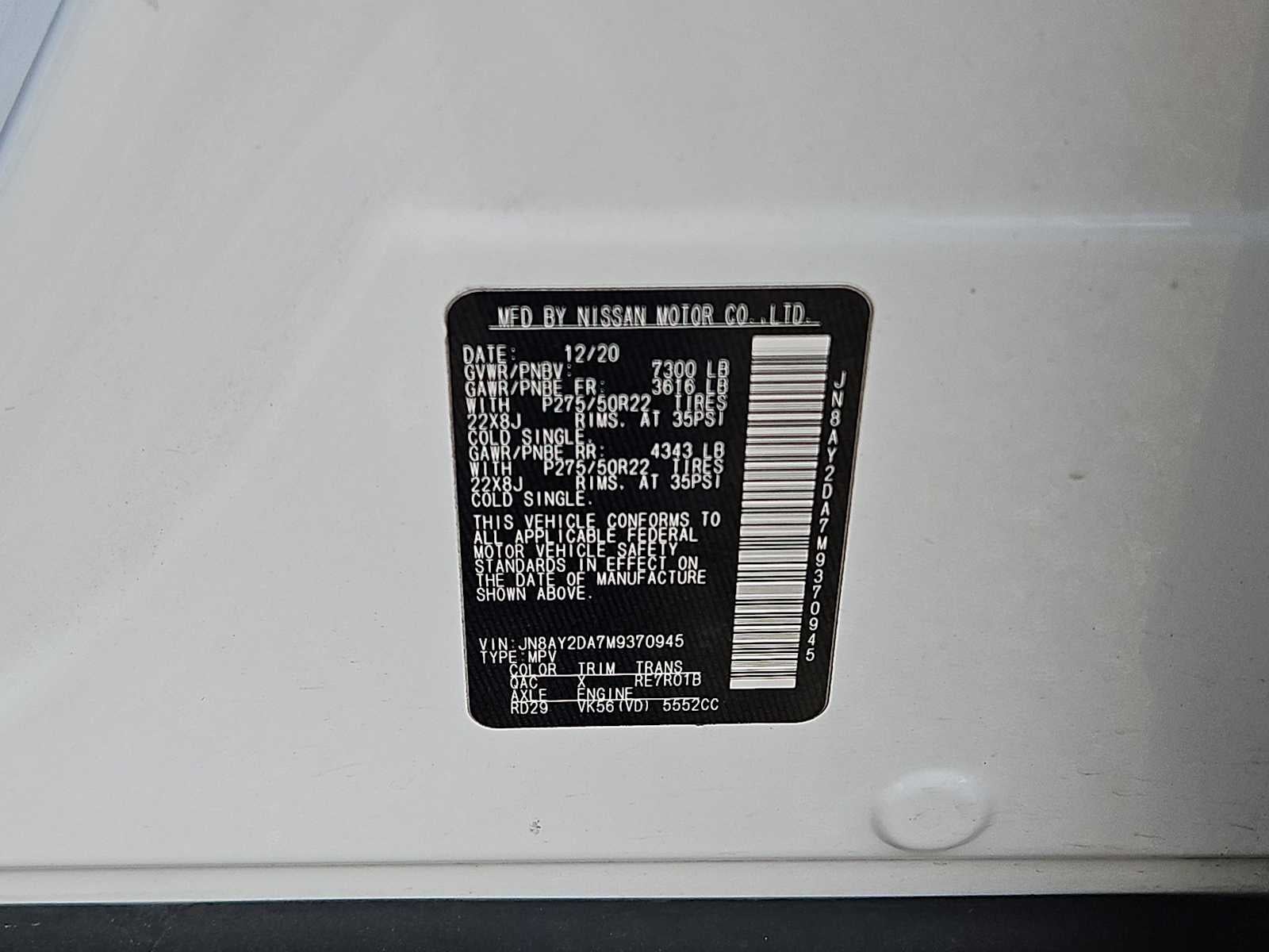 CAPTAIN'S CHAIRS PACKAGE Seating revised from 8 to 7 passengers, 2nd Row Captain's Chairs, 2nd Row Center Console w/Padded Armrest, CROSS BARS. Nissan Platinum with Aspen White Tricoat exterior and Brown interior features a 8 Cylinder Engine with 400 HP at 5800 RPM*.