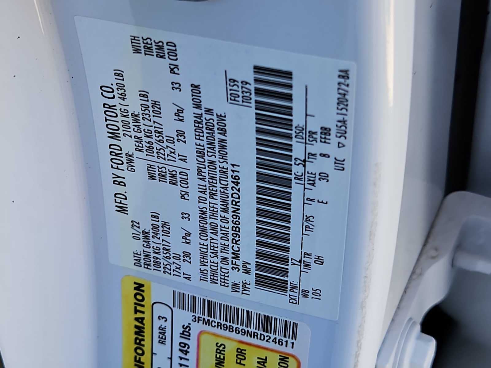 ENGINE: 1.5L ECOBOOST auto start-stop technology (STD). Ford Big Bend with Oxford White exterior and Ebony interior features a 3 Cylinder Engine with 181 HP at 6000 RPM*.