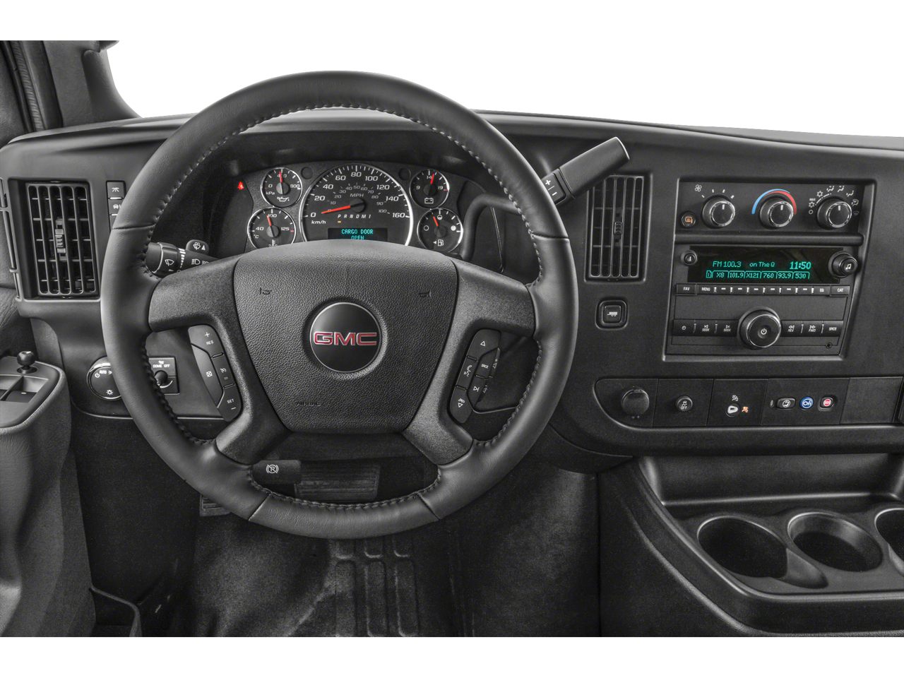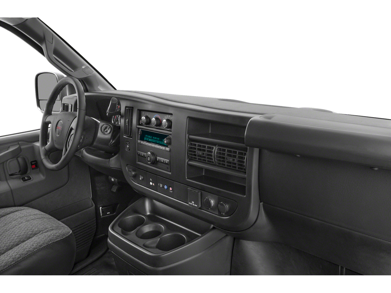 DRIVER CONVENIENCE PACKAGE includes Tilt-Wheel and (K34) cruise control, ENGINE, 4.3L V6 with Direct Injection and Variable Valve Timing, includes aluminum block construction (276 hp [206 kW] @ 5200 rpm, 298 lb-ft of torque [404 Nm] @ 3900 rpm) (STD), TRANSMISSION, 8-SPEED AUTOMATIC, ELECTRONICALLY CONTROLLED with overdrive and tow/haul mode. Includes Cruise Grade Braking, Powertrain Grade Braking and Tap-Up/Tap-Down Driver Shift Control (STD), AUDIO SYSTEM, AM/FM STEREO WITH MP3 PLAYER seek-and-scan, digital clock, TheftLock, random select, auxiliary jack and 2 front door speakers (STD). GMC Savana Cargo Van with Summit White exterior and Jet Black/Medium Dark Pewter interior features a V6 Cylinder Engine with 276 HP at 5200 RPM*.